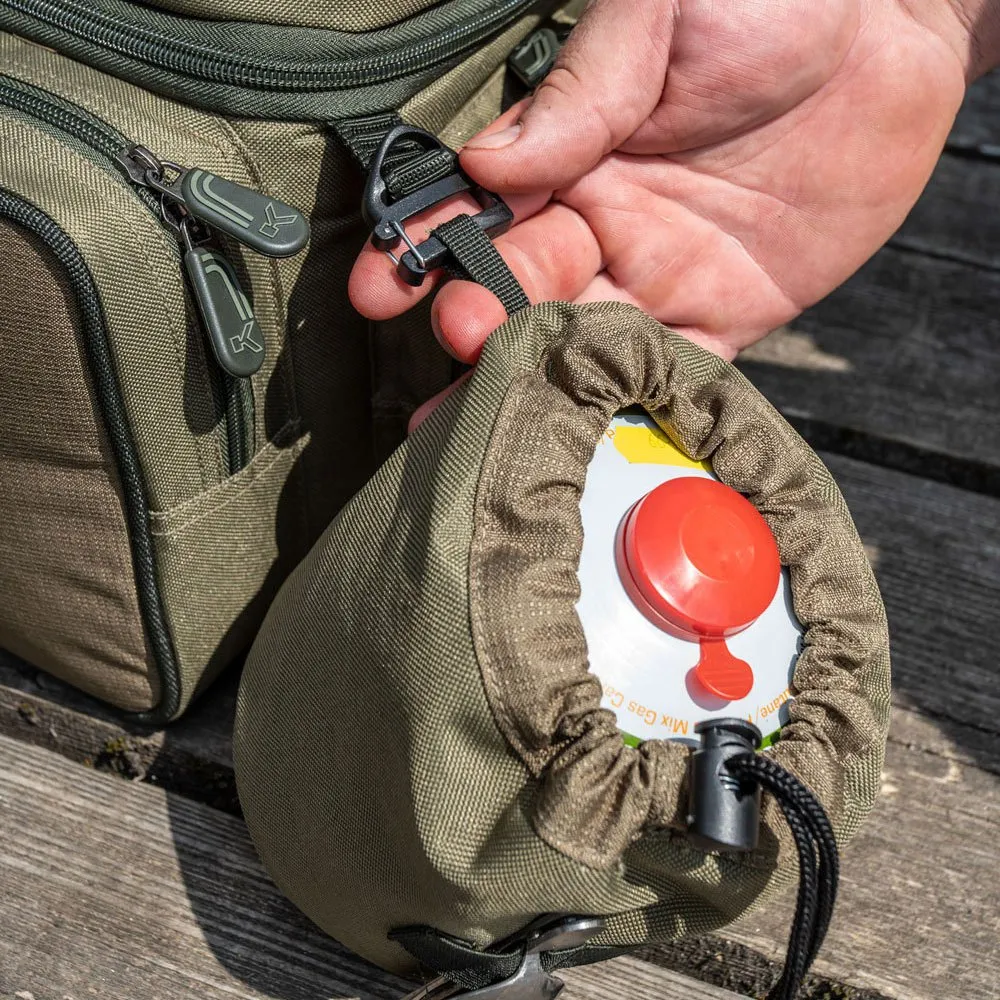 También cuenta con un soporte para latas de gas, que se fija mediante nuestro exclusivo clip de transición.
